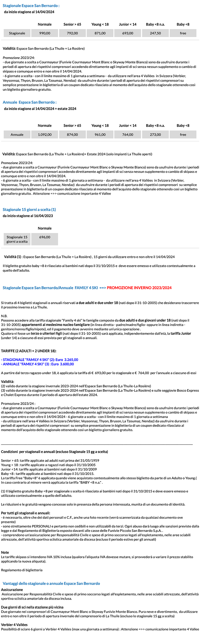 Skipass La Thuile Espace San Bernardo 2023/2024