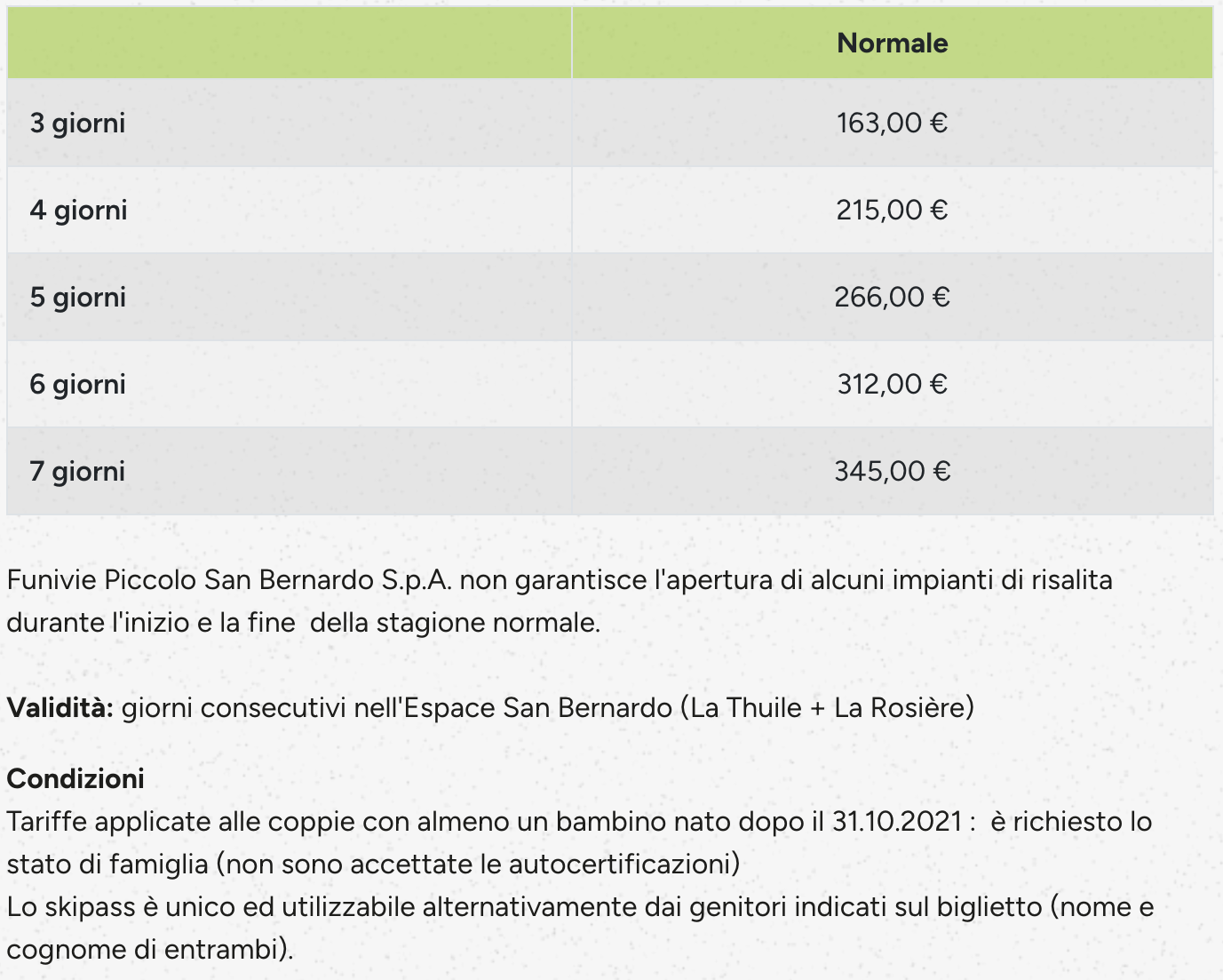 Skipass La Thuile Espace San Bernardo 2024/2025