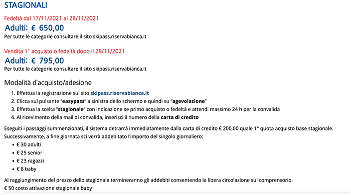 Skipass Giornalieri Limone Piemonte 2021/2022