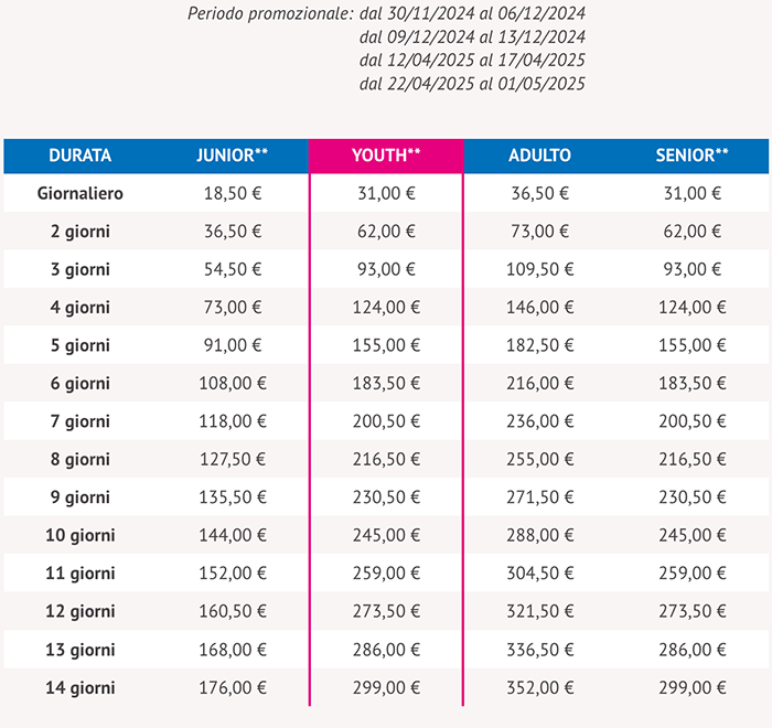 Skipass periodo Promozionale Livigno 2024/2025