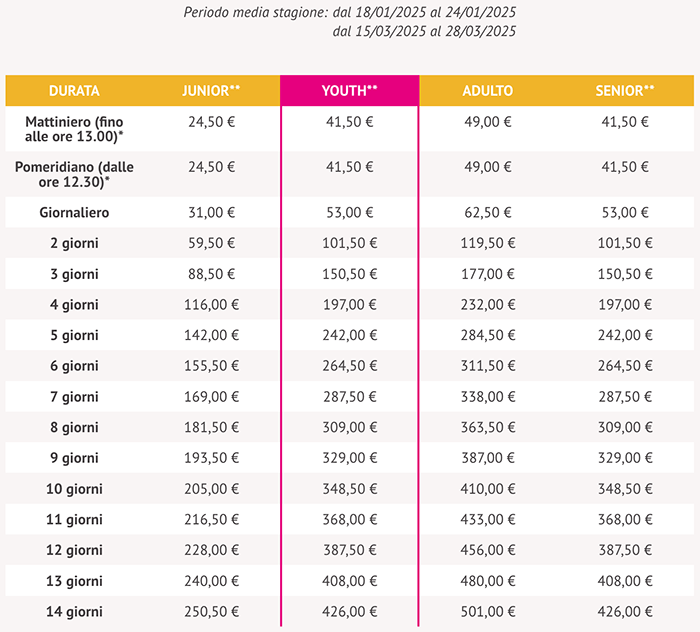 Skipass Media Stagione Livigno 2024/2025