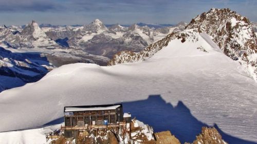 - Alla Monte Rosa Hutte (Zermatt) e passando poi per il ghiacciaio del Grenz in circa 5 ore di cammino tutto su ghiacciaio.