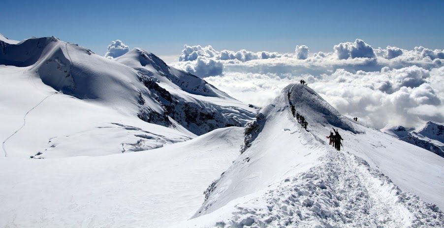 La partenza, anticipata di trenta minuti per avvantaggiarsi delle favorevoli condizioni metereologiche, è stata data da Breuil-Cervinia (2050 m.) alle ore 5:00. Con le prime luci dell'alba le stelle hanno lasciato la scena alla sagoma del Cervino colorata di rosso che annunciava una splendida giornata.
