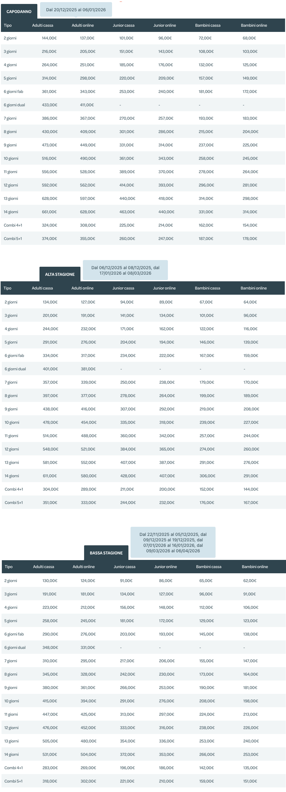 Skipass Pluri-Giornaliero Paganella Andalo 2025/2026