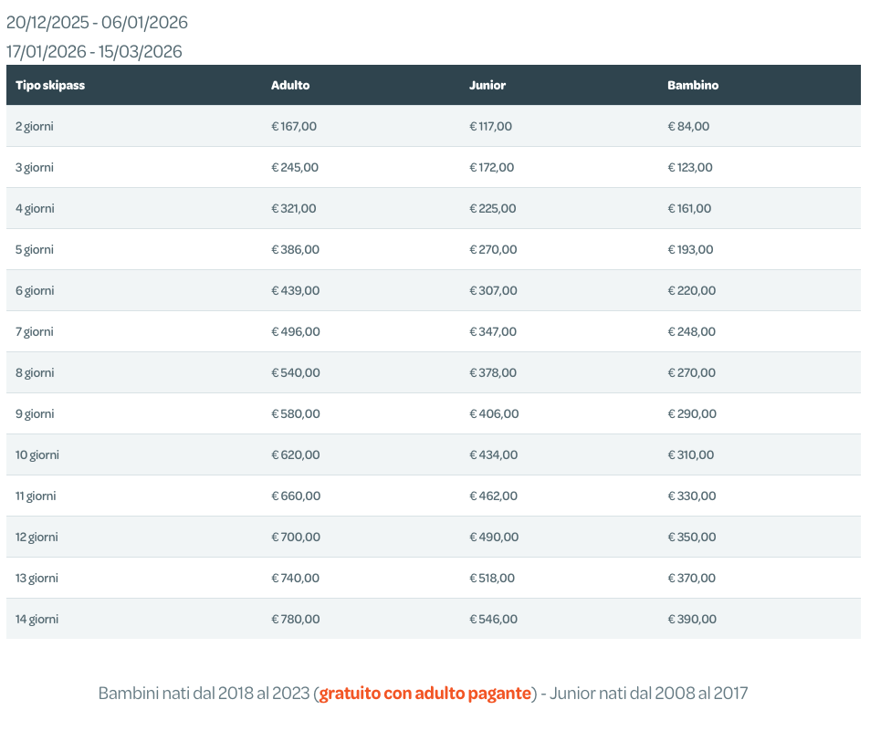 Skipass Plurigiornaliero Alta Stagione Superskirama