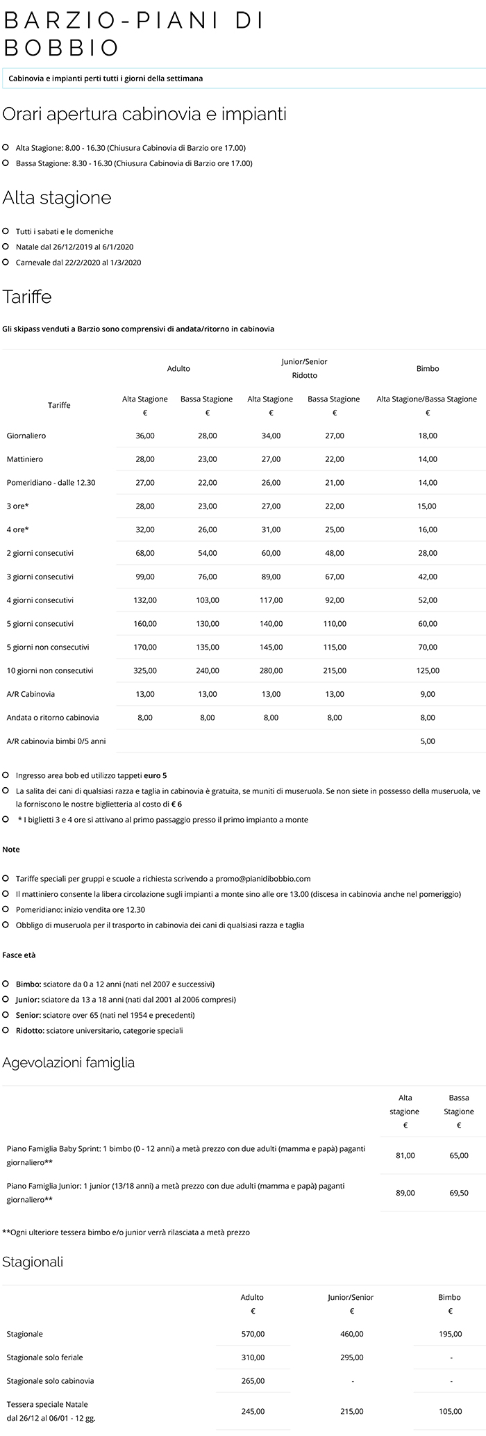 Skipass Piani di Bobbio Barzio Valtorta 2019/2020