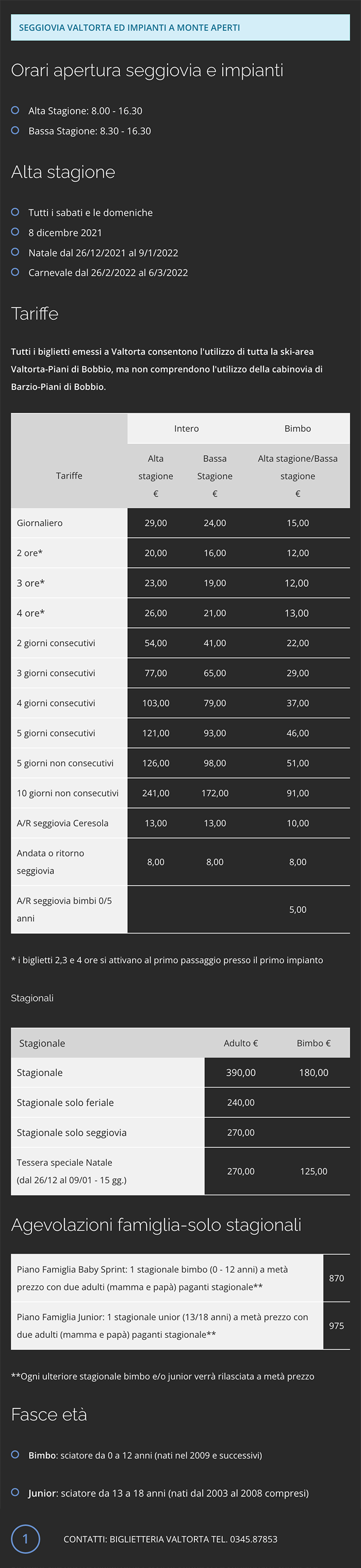 Skipass Piani di Bobbio Barzio Valtorta 2021/2022