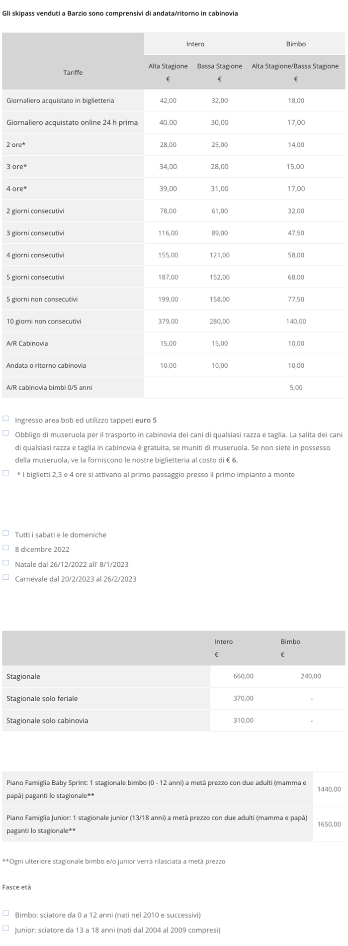 Skipass Barzio Piani di Bobbio 2022/2023