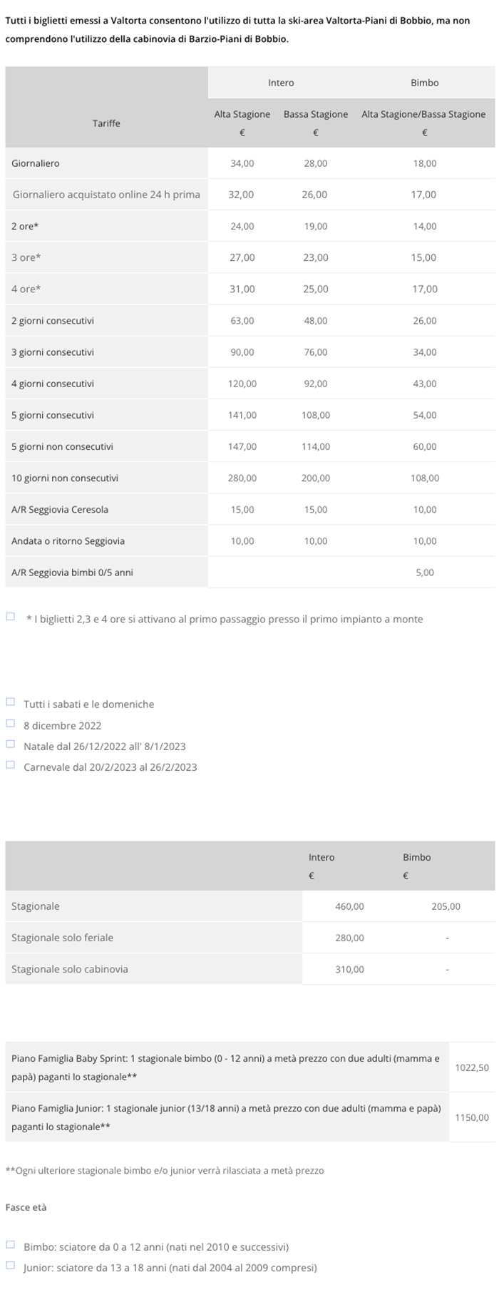 Skipass Valtorta Piani di Bobbio 2022/2023