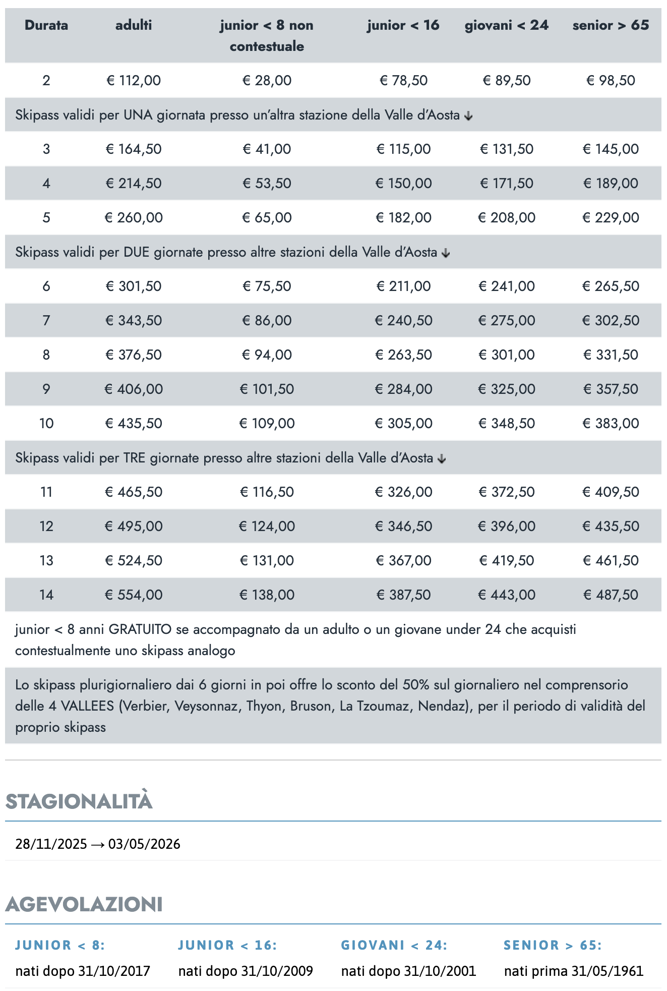 | Breuil-Cervinia | 5/15 | 10-40 cm |