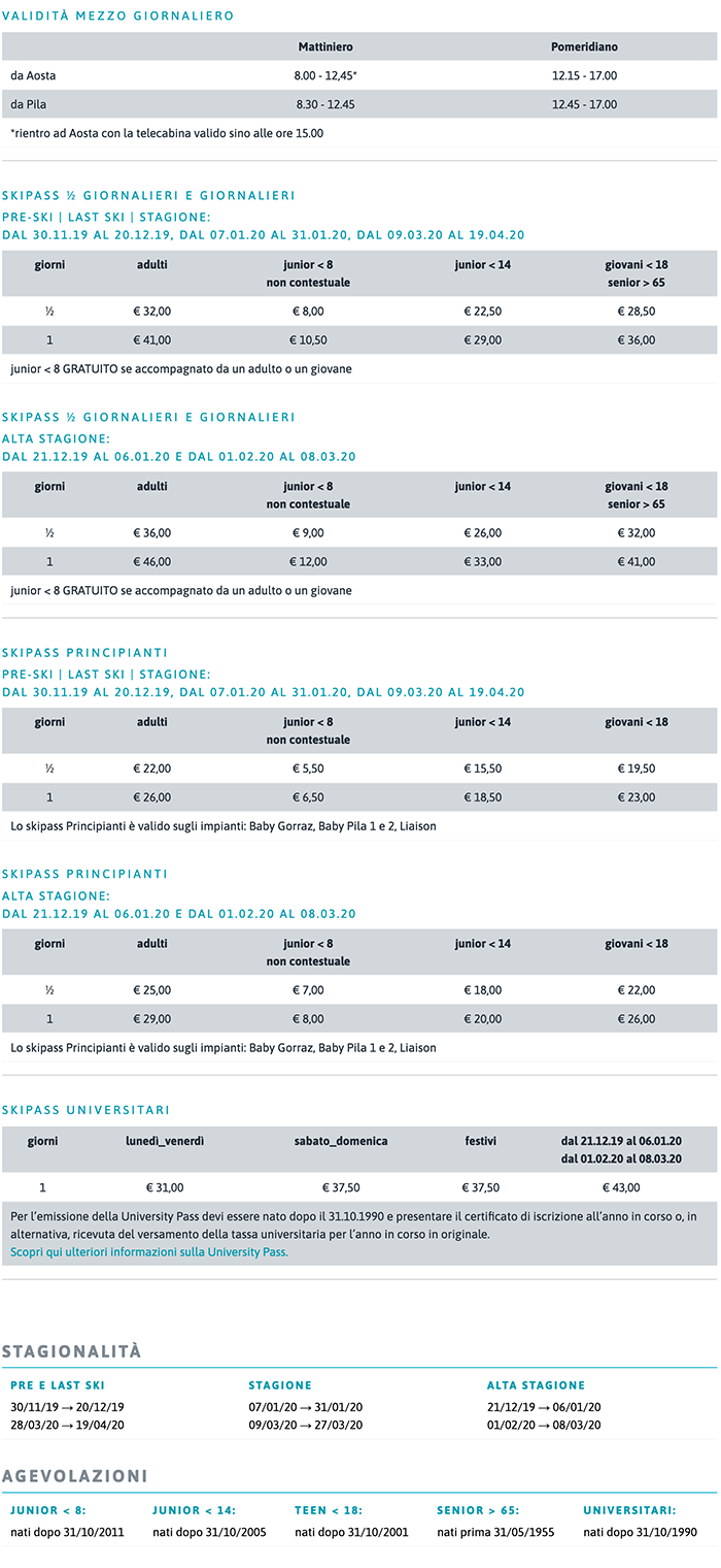 Skipass Giornalieri e ½ giornalieri 2019-2020