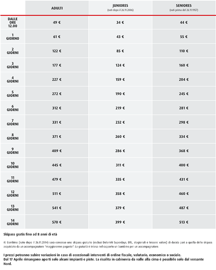 Skipass Stagione Plan de Corones Kronplatz 2022/2023