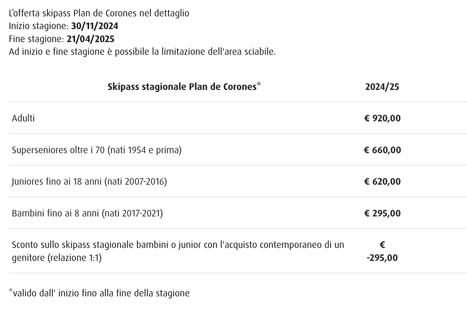 Skipass Stagione Plan de Corones Kronplatz 2024/2025