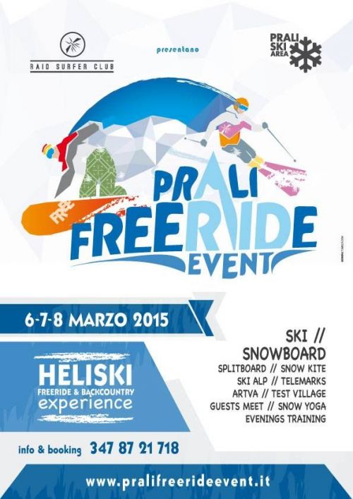 Da venerdì 6 marzo a domenica 8 marzo 2015 si terrà a Prali (TO) la prima edizione del Prali Freeride Event, una manifestazione dedicata al freeride e al mondo della montagna in tutte le sue declinazioni. Tantissime le attività proposte: uscite tra i paesaggi mozzafiato con le esperte guide alpine di Mountain Passion, corsi di freeride e telemark e prove materiali delle migliori marche sul mercato, sci, snowboard e splitboard.