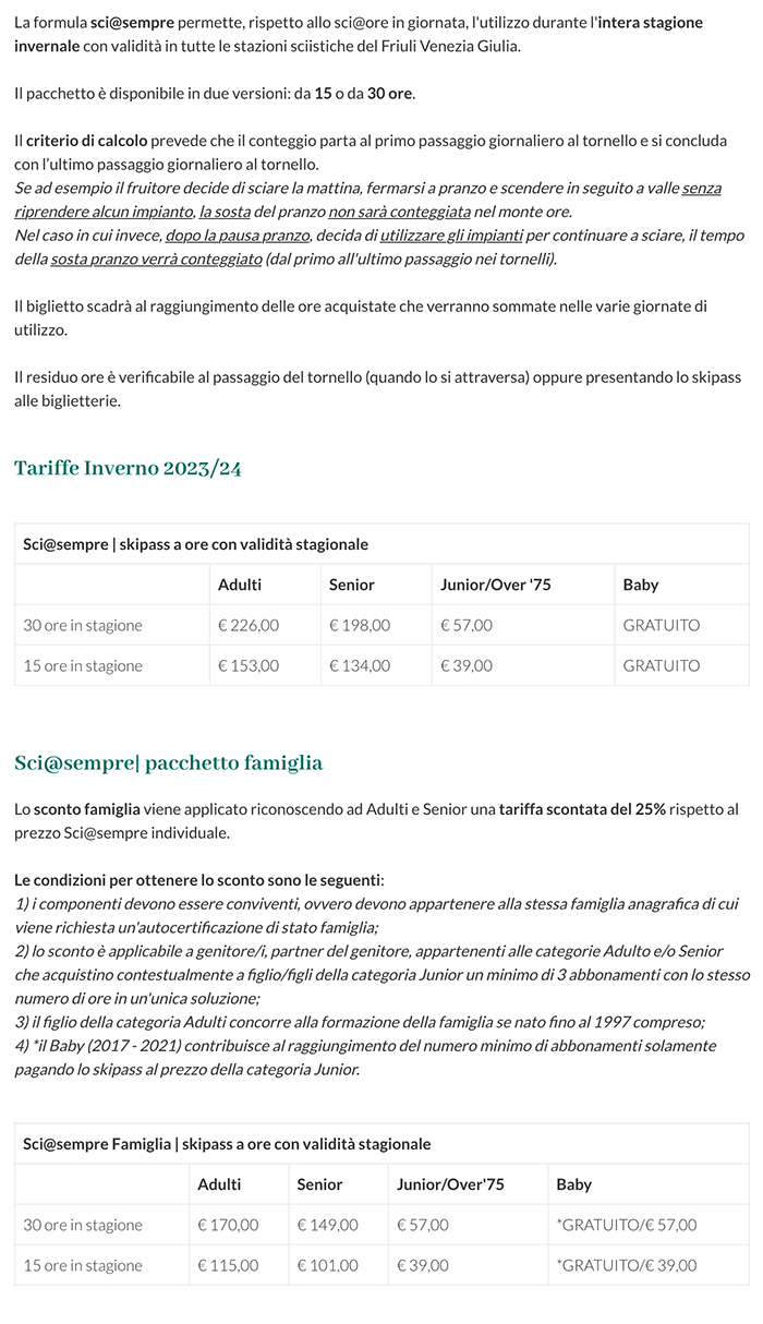 Skipass Giornalieri Plurigiornalieri Zoncolan 2023/24