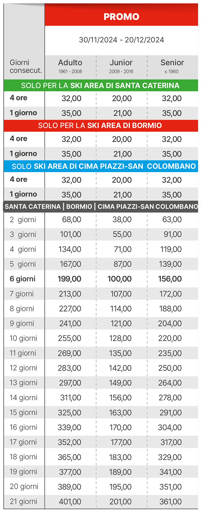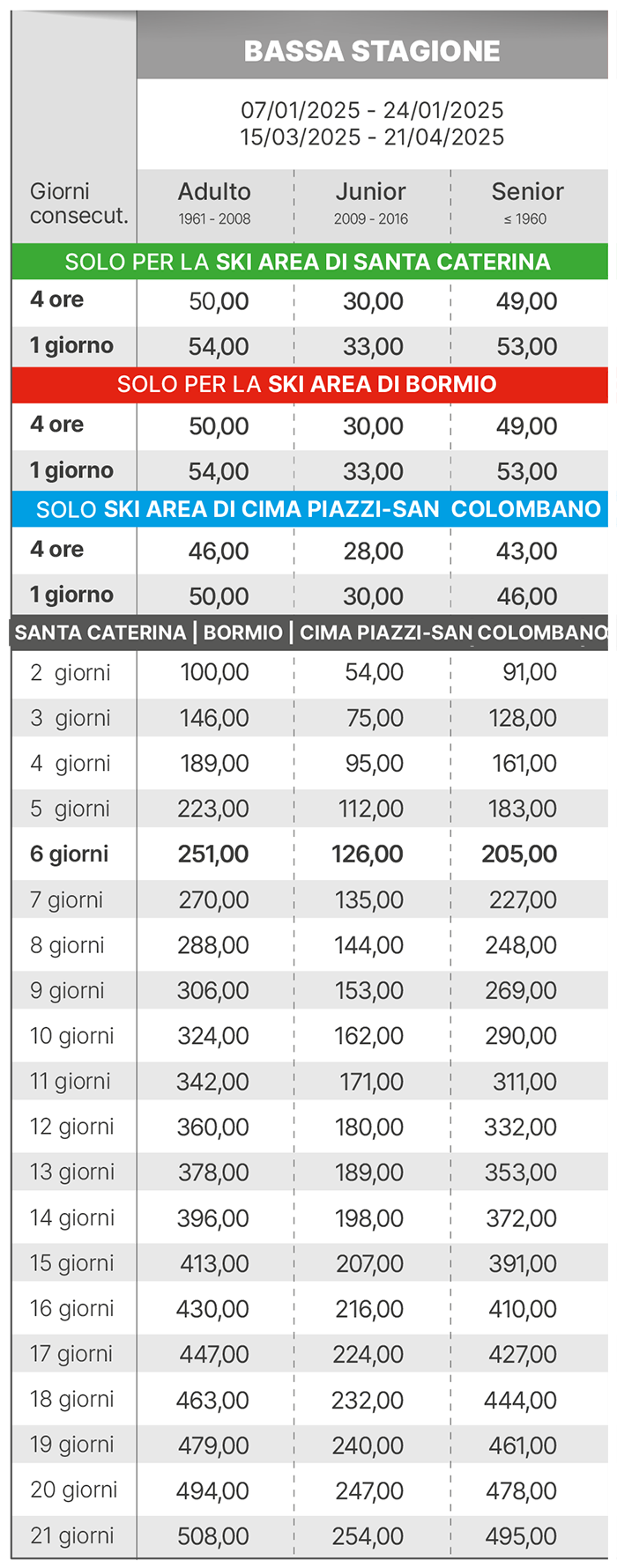 Skipass Bassa Stagione Santa Caterina 2024/2025