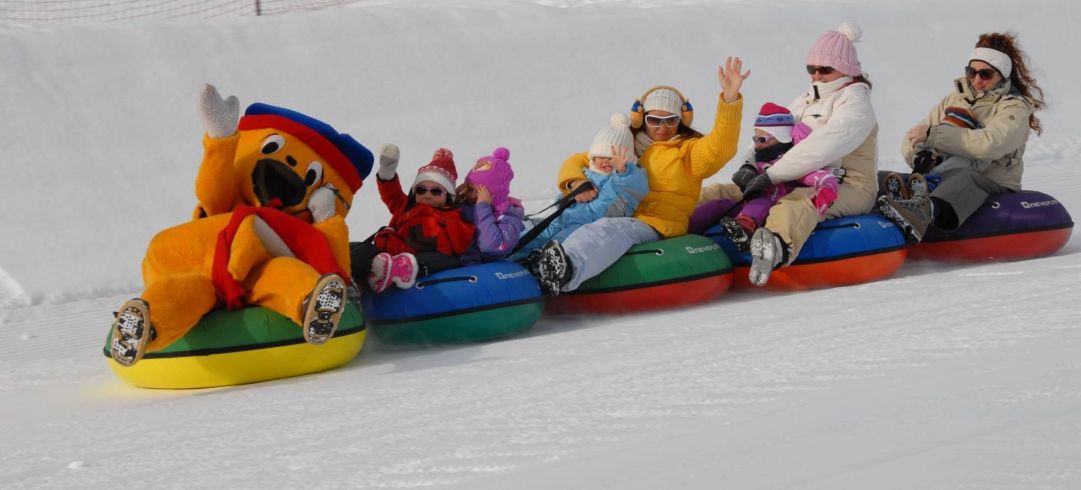Discese con gommoni, pista per bob e slittini, pista di pattinaggio, circuito delle motoslitte, villaggio igloo, un trenino che corre tutto il giorno attraverso il parco, circuiti per i quad e mini quad sono solo alcune delle attrattive dell'area giochi animata da Sappy, la buffa mascotte di Nevelandia. I genitori possono rilassarsi in un’ampia terrazza solarium.