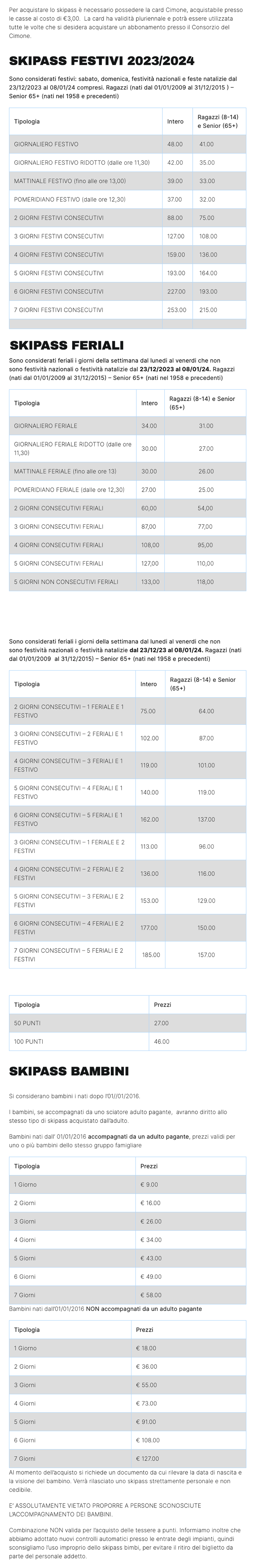 Skipass Stagionali Cimone Sci 2023/2024