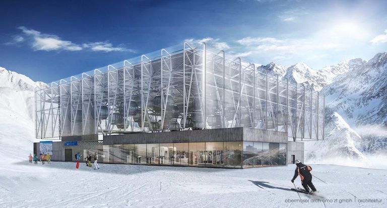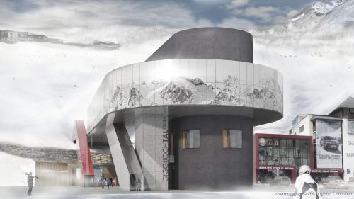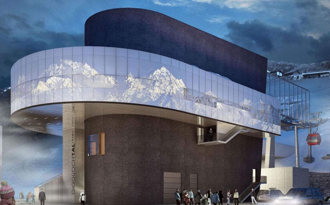 Con la costruzione della nuova cabinovia Giggijochbahn prosegue la collaborazione con l’architetto Johann Obermoser, che ha già progettato negli anni scorsi la cabinovia Gaislachkoglbahn e il rifugio ice Q sulla montagna del Gaislachkogl, location dell’ultimo film Spectre James Bond 007. Lo studio di architettura Obermoser realizza così un nuovo gioiello. Il nuovo piano di accesso alle cabine sarà di nuova concezione per evitare intralci nel salire a bordo. L’edificio stretto e longilineo, oltre che ospitare l’impianto tecnico, sarà una costruzione che abbellirà il centro di Soelden. I materiali usati, tra i quali un foglio specchiante per la copertura dell’edificio, daranno leggerezza alla struttura, che dialogherà perfettamente con la natura circostante. Si aggiungono i fattori servizio e comfort. Due scale mobili accedono direttamente al piano delle cabine.