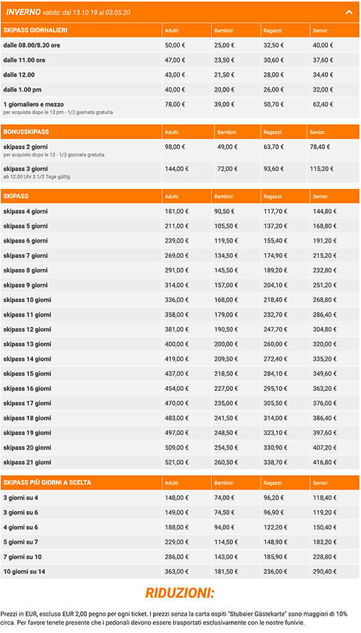 Skipass Ghiacciaio dello Stubai 2019/2020