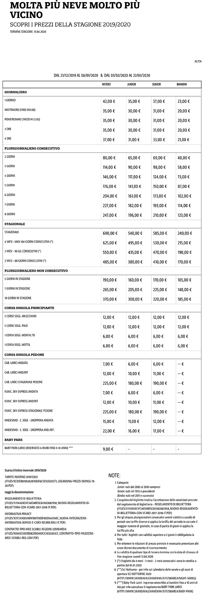Skipass Madesimo Valchiavenna 2019/2020 Alta Stagione