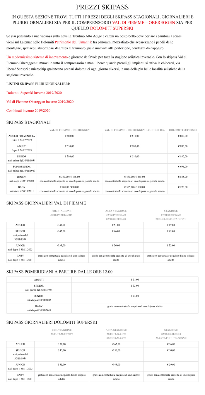 - Skipass Pampeago Predazzo Obereggen