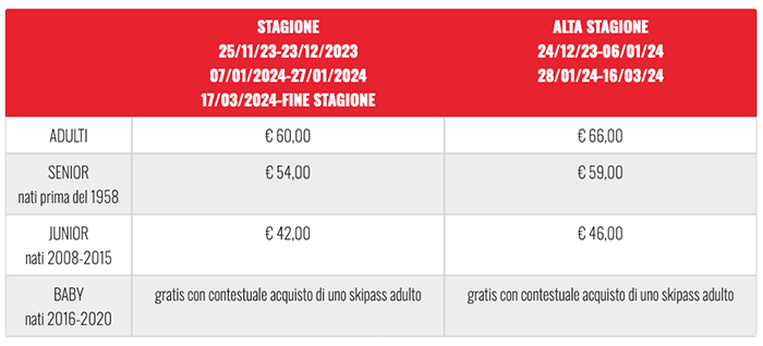 Skipass pomeridiano Pampeago Predazzo Obereggen 2023/2024