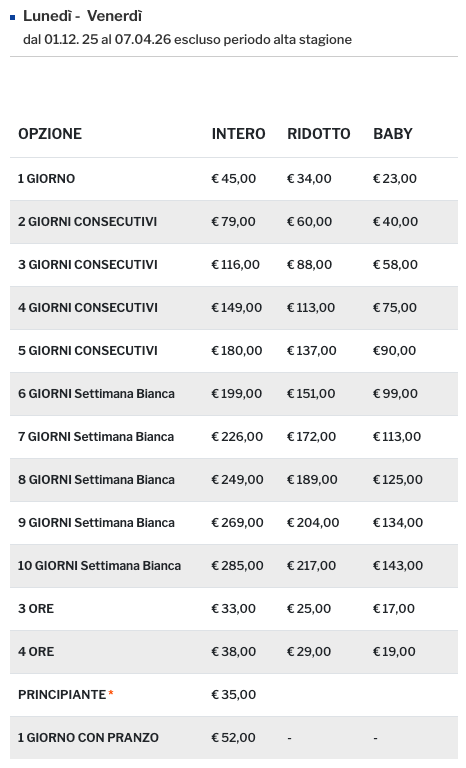 Skipass Bassa Stagione Valmalenco 2025/2026