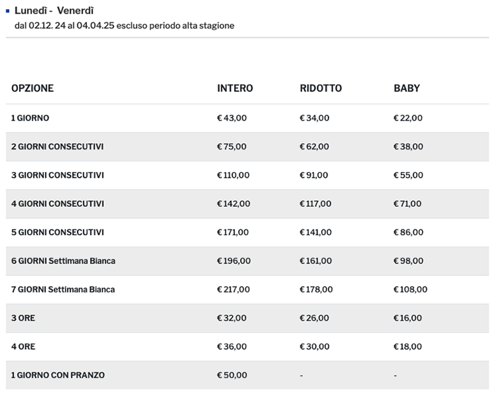 Skipass Bassa Stagione Valmalenco 2024/2025