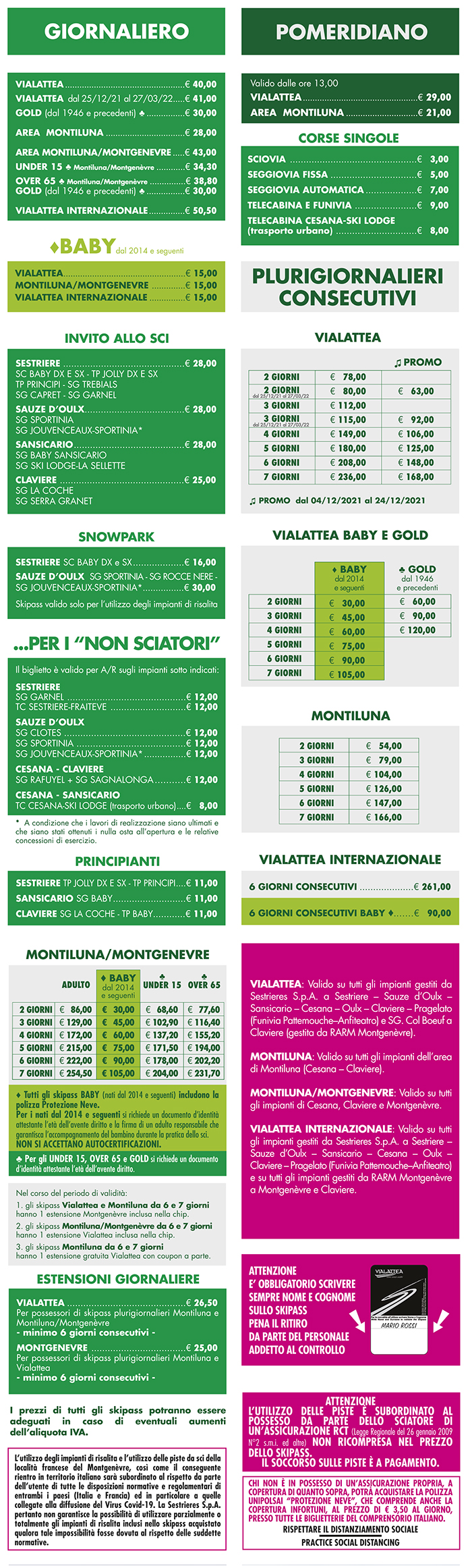 Skipass ViaLattea, Sestriere, Sauze dOulx, Claviere 2021/2022