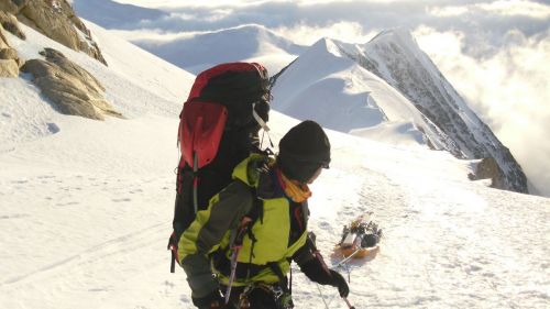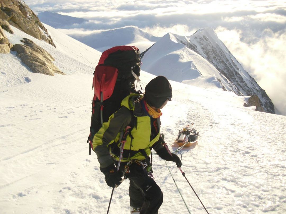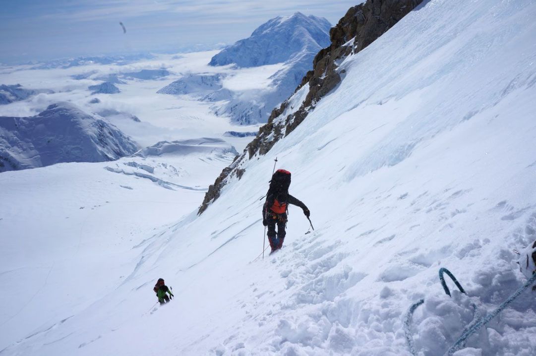 Più si sale e più le pulke diventano un problema. Il massimo della difficoltà aguzza anche il massimo dell’ingegno. Tra campo3 e Campo4 c’è il MotorCycle Hill, un ripido tratto di oltre 300 m che con le slitte mette a dura prova. Unico medo per proseguire è utilizzare le tecniche di soccorso: dopo aver attrezzato una sosta di ancoraggio si montano una carrucola con autobloccante, e grazie a 60 metri di corda, si issa la pulka facendo contrappeso con il proprio corpo. La spedizione capisce che per proseguire deve diminuire i carichi, così sono troppo pesanti. Il McKinley non è proprio una passeggiata: fa freddo e quando va bene il termometro segna 26 gradi sotto zero. Arrivati a campo 5 ci si deve vestire con i tutoni. Altrimenti sarebbe impossibile resistere. Di notte, anche dentro la tenda si scende fino a -26 gradi. Piumino, maglione e berretto sempre indossati, eppure si forma il ghiaccio persino dentro il sacco a pelo.