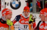 Il ventiduenne ha realizzato "solo" il quarto tempo di giornata sugli sci, ma ha coperto tutti i bersagli a differenza di chi ha fatto meglio di lui nel fondo. Fra costoro, i compagni di squadra Yury Shopin e Petr Pashchenko che hanno entrambi mancato un bersaglio a terra e si sono piazzati rispettivamente secondo e terzo a 28"5 e 34"0 dal vincitore.