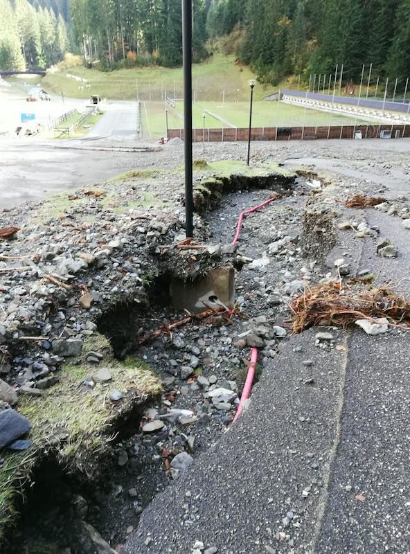 Dopo le forti piogge e la tempesta di ventodei giorni scorsi che avevano isolato il centro abitato di Forni Avoltri sia verso Sappada, sia verso Udine, a causa degli allagamenti e delle frane provocate dall’esondazione di rii e torrenti, solo nelle ultime ore è stato possibile raggiungere Piani di Luzza per verificare la situazione alla Carnia Arena che è subito apparsa. Lo testimoniano le immagini che il Direttore tecnico della nazionale italiana Juniores e Giovani di Biathlon Mirco Romanin ha inviato alla redazione di Neveitalia che mostrano decine di alberi abbattuti dalla forza del vento, pesanti smottamenti e buche nell'asfalto del tracciato che nelle settimane scorse aveva ospitato il raduno proprio delle squadre nazionali di categoria.