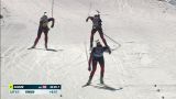 Nel primo giro Chevalier, Wierer e Eckhoff si prendono il compito di tenere alto il ritmo per iniziare a fare selezione; le tre si ritrovano a sbagliare nel primo poligono e con Hanna Oeberg accusano una ventina di secondi di ritardo dalla testa della corsa che è di Elisa Gasparin con Marte Roeiseland, in pochi secondi anche Hauser, Persson, Lisa Vittozzi e Hinz con l'andatura che scema nella seconda tornata con un gruppo di una ventina di biathlete che si ritrovano al comando.