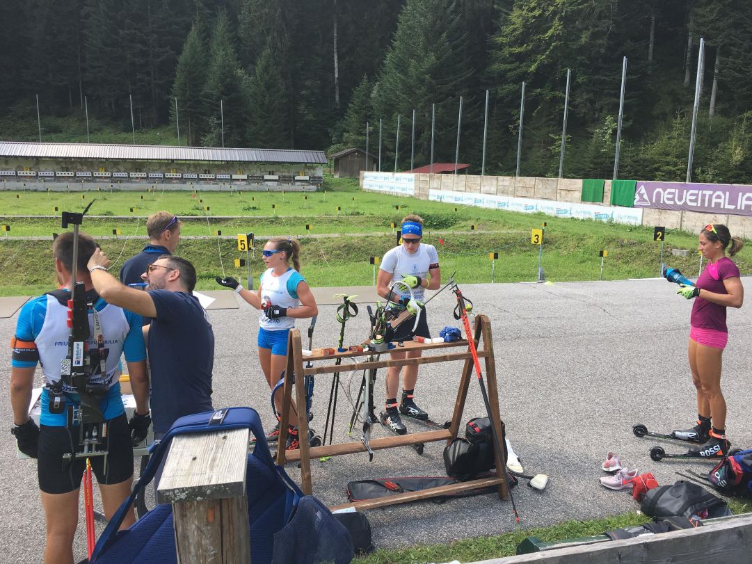 Tutti i biathleti azzurri sono in ritiro ormai da una decina di giorni, durante i quali sono stati aumentati notevolmente i carichi di lavoro. Oggi i tecnici hanno deciso di sottoporre gli atleti a dei test interni su una prova Sprint e successivamente sui quattro poligoni per fare il punto della situazione sulla preparazione fatta finora.