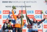 Terza posizione per la beniamina di casa Veronika Vitkova, battuta di 13"9 e costretta al terzo posto da un errore a terra. Ben più fallose le contententi per la Sfera di cristallo, Darya Domracheva e Kaisa Mäkäräinen. La bielorussa oggi ha percorso due volte l'anello di penalità e ha concluso quarta, mentre la finlandese ha sbagliato 3 volte e nonostante il miglior tempo di giornata sugli sci stretti non è andata oltre la settima posizione.