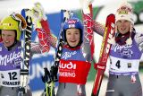 La statunitense ha preceduto di un soffio, 8 centesimi, la tedesca Viktoria Rebensburg improvvisamente risorta, terza a 10 centesimi la francese Tessa Worley e quarta a 23 centesimi una Federica Brignone finalmente positiva e sulla quale sono riposte tutte le speranze odierne di podio per l’Italia anche se Manuela Moelgg, sesta alle spalle dell’austriaca Stephanie Brunner, non è lontana da quel podio provvisorio, 51 centesimi. Sofia Goggia ha invece preso il peggior vento nella parte alta e si è buttata come un kamikaze sul ripido per recuperare ma è subito scivolata via sull’interno in curva destra.