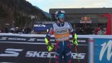 Con il pettorale 1, Meillard è davvero troppo cauto e rotola a 1”01, 10° dietro ad uno splendido Anguenot (a 0”84 col pettorale 24)) e davanti a Radamus (+ 1”13), Brennsteiner (a 1”28, ci si attendeva di più) e un Luca De Aliprandini con tanti rimpianti; sì, perché il trentino era scattato benissimo, ma appena prima del muro ha inforcato una porta con testa e braccio, finendo in rotazione e pagando in un lampo 7 decimi, prima di sbagliare ancora e finire così a 1”34, in tredicesima posizione.
