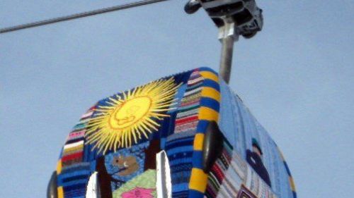 Con l'arrivo della bella stagione in freddo abbandonerà Arosa ma i colori dei lavori a maglia resteranno per essere ammirati dai turisti!