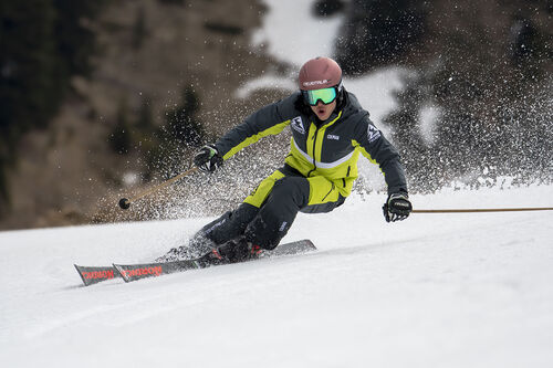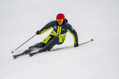 Nel TEST IN PISTA Bertolini conferma le sensazioni della prova a secco, elogiando un grande sostegno frontale in curva pur non trovandosi bene in uscita dalle curve. Magri lo trova invece vuoto nella parte anteriore e fatica ad appoggiarsi nell’ingresso curva. Mattosoglio ribadisce quanto provato a secco ed è concorde con gli altri testatori nel consigliare lo scarpone a sciatori di livello L4- L6 che ricercano comfort.