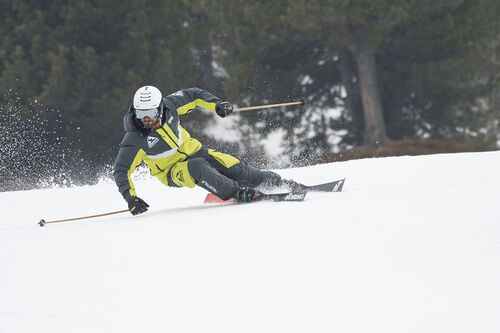 Testato in pista Mattasoglio lo trova leggermente più scomodo che nel test a secco e rileva un lieve fastidio nell’avampiede superiore a causa del collo del piede medio-alto, lo consiglia a chi ha il collo sottile. Bertolini conferma la sensazione a secco di un fastidio in corrispondenza del collo del piede. Una pecca, la poca stabilità nei livelli più alti sia a livello frontale che posteriore. Lo scarpone sorprende Marinelli sui livelli di media intensità facendo un arco medio-ampio, si dimostra preciso e stabile. Aumentando d’intensità il gambetto tende a cedere e la scarpa a spanciare nell’avampiede.