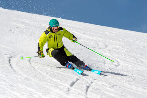 Si presenta subito come un prodotto di altissimo livello “grazie al sistema di trasmissione race flex, risulta davvero performante” sostiene l’allenatore Andrea Odinotte e che si sente di consigliarlo a sciatori di alto livello con tenuta laterale ottima e progressione in avanti molto centrata.