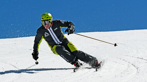 Le curve medie, anche a velocità sostenuta nonostante i 175cm di lunghezza, sono il campo ideale su tutti i tipi di pendio. In queste situazioni il prodotto italiano non affatica, accetta volentieri cambi di ritmo e sostiene la sciata. Bisogna invece scendere a qualche compromesso per la stabilità quando si ampia il raggio di curva e lo sci divenen un po’ più instabile e impreciso (Giordano Magri).
