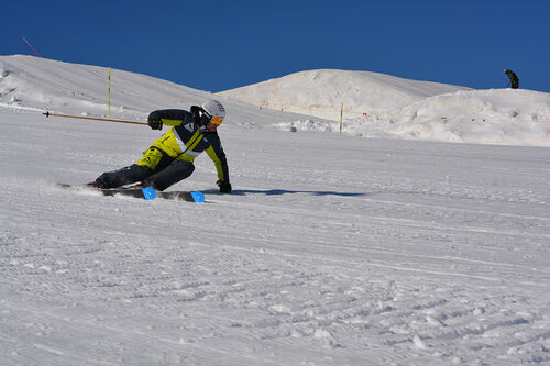Il nuovo Speed Course Master GS è uno sci che richiede in ogni caso buona prestanza fisica per essere sfruttato al meglio, nonostante la piastra Konect faccia sentire meglio il terreno, rendendo la deformazione molto omogenea (Giordano Magri).