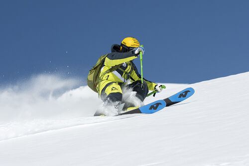 Può essere montato con un set-up da ski-touring da usare per brevi risalite con le pelli per andare a ricercare spot ancora vergini. Uno sci da avere per gli "Epic Day in Powder".