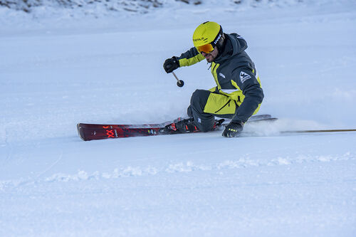 Anche il rocker di punta e coda è stato accorciato e appiattito per una ridotta resistenza alla sterzata a velocità moderata e una maggiore stabilità ad alta velocità. Ciò si traduce in una versatilità ancora maggiore e una sportività eccezionale e dinamica. Il 3D.Glass integrato nella parte anteriore e posteriore dello sci lo rende notevolmente più vivace e reattivo.