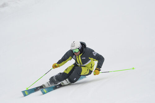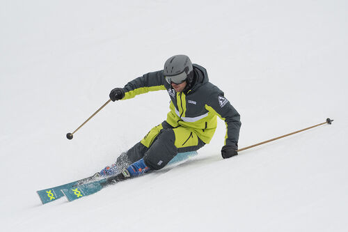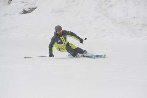 Lo sci rende molto bene nelle curve ampie e sciato su ampi raggi ha un’ottima conduzione, diventa più complicato gestirlo, a causa di dell’inversione lenta, nello stretto.