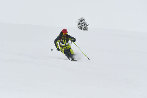 In discesa è uno sci molto giocoso ma che sa prendere maledettamente sul serio anche i pendii dove tecnica e un po' di "fegato" sono indispensabili.
