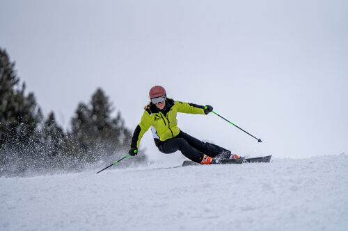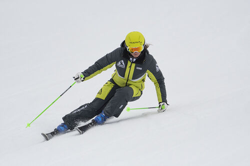 Le incertezze emergono sul ripido dove lo sci inizia a vibrare e a risultare ballerino, non agevolando la gestione della curva medio-ampia e costringendo la sciatrice ad abbassare il ritmo e aumentare il numero di curve (Isabel Anghilante).