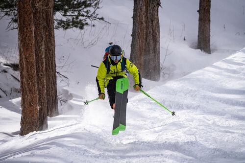 Può essere montato con un set-up da ski Touring per usarlo in piccole o medie ascensioni per ricercare spot ancora vergini.